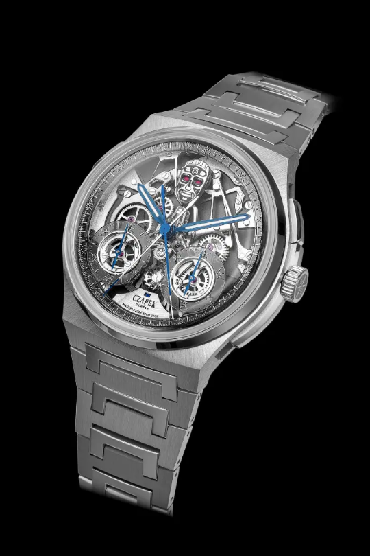Robot na ciferníku je výsledkem precizní práce partnera MD’Art a sám o sobě představuje miniaturní umělecké dílo. Titanová hlava byla vyřezána, ručně leštěna a laserově gravírována, zatímco oči byly ručně domalovány neonovými tóny. Každý detail tak podtrhuje kontrast mezi technickou strohostí a hravou imaginací, která je pro Czapek tak charakteristická.